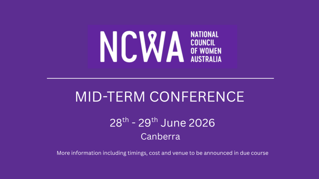 The National Council of Women Australia Mid-Term Conference will bring together members, leaders, and advocates from across the country to discuss the issues shaping the lives of women in Australia today. The two-day event commencing Sunday 28th June 2026 to Monday 29th June 2026 will provide space for dialogue, collaboration, and strategic thinking as we continue to advance equality, representation, and opportunity for women.